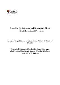 Papastamos, D., Stevenson, S. and Matysiak, G. (2015) Assessing the accuracy and dispersion of real estate investment forecasts. International Review of Financial Analysis, 42. pp. 141-152. ISSN 1057-5219 doi: 10.1016/j.irfa.2015.01.014