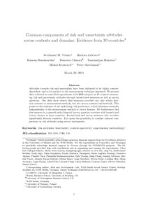 Vieider, F. M., Lefebvre, M., Bouchouicha, R., Chmura, T., Hakimov, R., Krawczyk, M. and Martinsson, P. (2015) Common components of risk and uncertainty attitudes across contexts and domains: evidence from 30 countries. Journal of the European Economic Association, 13 (3). pp. 421-452. ISSN 1542-4774 doi: 10.1111/jeea.12102