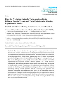 Uncontrolled Keywords intrinsic disorder; disorder prediction methods; types of disorder; structural bioinformatics