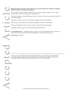 Bartlett, L. J., Williams, D. R., Prescott, G. W., Balmford, A., Green, R. E., Eriksson, A., Valdes, P. J., Singarayer, J. S. and Manica, A. (2015) Robustness despite uncertainty: regional climate data reveal the dominant role of humans in explaining global extinctions of Late Quaternary megafauna. Ecography. ISSN 0906-7590 doi: 10.1111/ecog.01566