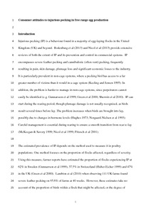 Free range egg producers face continuing problems from injurious pecking (IP) which has financial consequences for farmers and poor welfare implications for birds. Beak trimming has been practised for many years to limit the damage caused by IP, but with the UK Government giving notification that they intend to ban beak trimming in 2016, considerable efforts have been made to devise feasible housing, range and management strategies to reduce IP. A recent research project investigated the efficacy of a range of IP reducing management strategies, the mean costs of which came to around 5 pence per bird. Here, the results of the above project’s consumer survey are presented: consumers’ attitudes to free range egg production are detailed showing that, whilst consumers had a very positive attitude towards free range eggs, they were especially uninformed about some aspects of free range egg production. The contingent valuation technique was used to estimate the price premium consumers would be prepared to pay to ensure that hens do not suffer from IP: this was calculated as just over 3% on top of the prevailing retail price of free range eggs. These findings reinforce other studies that have found that whilst consumers are not generally well-informed about certain specific welfare problems faced by animals under free range conditions, they are prepared to pay to improve animal welfare. Indeed, the study findings suggest that producers could obtain an additional price premium if they demonstrate the welfare provenance of their eggs, perhaps through marketing the eggs as coming from birds with intact beaks. This welfare provenance issue could usefully be assured to consumers by the introduction of a mandatory, single, accredited EU-wide welfare-standards labelling scheme.