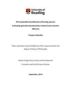 Gadanakis, Y. ORCID: https://orcid.org/0000-0001-7441-970X (2015) The sustainable intensification of farming systems: evaluating agricultural productivity, technical and economic efficiency. PhD thesis, University of Reading.