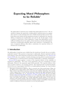 Andow, J. (2015) Expecting moral philosophers to be reliable. Dialectica, 69 (2). pp. 205-220. ISSN 1746-8361 doi: 10.1111/1746-8361.12092