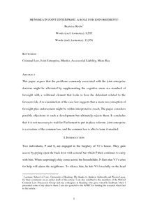 Krebs, B. (2015) Mens rea in joint enterprise: a role for endorsement? Cambridge Law Journal, 74 (3). pp. 480-504. ISSN 0008-1973 doi: 10.1017/S0008197315000677