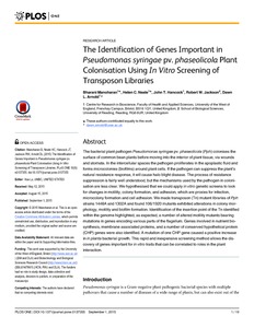 Manoharan, B., Neale, H. C., Hancock, J. T., Jackson, R. W. and Arnold, D. L. (2015) The identification of genes important in pseudomonas syringae pv. phaseolicola plant colonisation using in vitro screening of transposon libraries. PLoS ONE, 10 (9). e0137355. ISSN 1932-6203 doi: 10.1371/journal.pone.0137355
