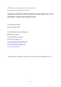 Unpacking the mechanism by which psychological ownership manifests at the level of the individual: a dynamic model of identity and self.