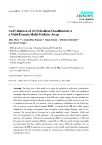 Miron, A., Rogozan, A., Ainouz, S., Bensrhair, A. and Broggi, A. (2015) An evaluation of the pedestrian classification in a multi-domain multi-modality setup. Sensors, 15 (6). pp. 13851-13873. ISSN 1424-8220 doi: 10.3390/s150613851
