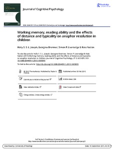 Working memory, reading ability and the effects of distance and typicality on anaphor resolution in children.