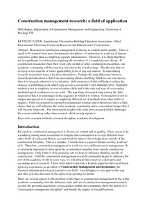 Construction management research: a field of application.