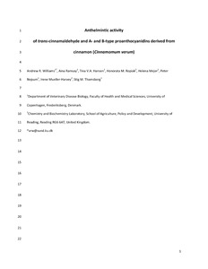 Williams, A. R., Ramsay, A., Hansen, T. V. A., Ropiak, H. M., Mejer, H., Nejsum, P., Mueller-Harvey, I. and Thamsborg, S. M. (2015) Anthelmintic activity of trans-cinnamaldehyde and A- and B-type proanthocyanidins derived from cinnamon (Cinnamomum verum). Scientific Reports, 5. 14791. ISSN 2045-2322 doi: 10.1038/srep14791