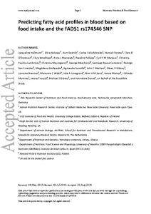 [3] Bokor, S., Dumont, J., Spinneker, A., Gonzalez-Gross, M., Nova, E., Widhalm, K., Moschonis, G., Stehle, P., Amouyel, P., De Henauw, S., Molnàr, D., Moreno, L. A., Meirhaeghe, A., Dallongeville, J.; HELENA Study Group, Single nucleotide polymorphisms in the FADS gene cluster are associated with delta-5 and delta-6 desaturase activities estimated by serum fatty acid ratios. J Lipid Res. Aug. 2010, 51(8):2325-33.