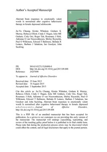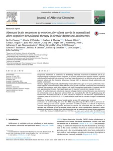 Chuang, J.-Y., Whitaker, K., Murray, G. K., Elliott, R., Hagan, C. C., Graham, J. M. E., Ooi, C., Tait, R., Holt, R. J., van Nieuwenhuizen, A. O., Reynolds, S., Wilkinson, P. O., Bullmore, E. T., Lennox, B. R., Sahakian, B. J., Goodyer, I. and Suckling, J. (2016) Aberrant brain responses to emotionally valent words is normalised after cognitive behavioural therapy in female depressed adolescents. Journal of Affective Disorders, 189. pp. 54-61. ISSN 0165-0327 doi: 10.1016/j.jad.2015.09.008