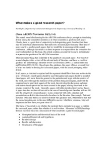 The annual round of refereeing for the ARCOM conference always prompts a stimulating debate among the committee members as to what constitutes a good research paper. Clearly, there is a good deal of subjectivity in distinguishing good from bad, but there may be some basic characteristics that mark out a research paper from any other kind of paper, and it is good research papers that we would like to encourage at the annual conference.