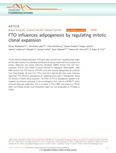 Merkestein, M., Laber, S., McMurray, F., Andrew, D., Gregor, S., Sanderson, J., Li, M., Usher, S., Sellayah, D., Ashcroft, F. M. and Cox, R. D. (2015) FTO influences adipogenesis by regulating mitotic clonal expansion. Nature Communications, 6. 6792. ISSN 2041-1723 doi: 10.1038/ncomms7792