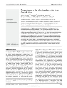 Dent, S., Xia, D., Wastling, J., Neuman, B., Britton, P. and Maier, H. (2015) The proteome of the infectious bronchitis virus Beau-R Virion. Journal of General Virology, 96 (12). pp. 3499-3506. ISSN 0022-1317 doi: 10.1099/jgv.0.000304