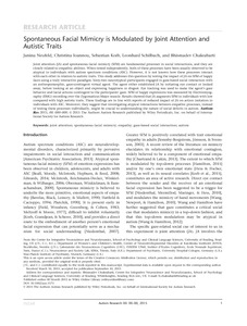 Spontaneous facial mimicry is modulated by joint attention and autistic traits.
