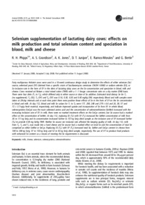 Phipps, R. H., Grandison, A. S., Jones, A. K., Juniper, D. T., Ramos-Morales, E. and Bertin, G. (2008) Selenium supplementation of lactating dairy cows: effects on milk production and total selenium content and speciation in blood, milk and cheese. Animal, 2 (11). pp. 1610-1618. ISSN 1751-7311 doi: 10.1017/S175173110800298X