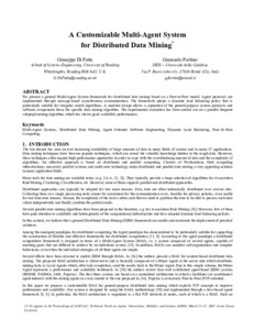 Di Fatta, G. and Fortino, G. (2007) A customizable multi-agent system for distributed data mining. In: The 22nd ACM Symposium on Applied Computing (SAC 2007), March 11-15, 2007, Seoul, Korea, pp. 42-47. doi: 10.1145/1244002.1244012