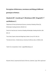 Perception of bitterness, sweetness and liking of different genotypes of lettuce.