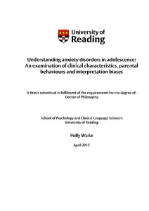 Understanding anxiety disorders in adolescence: an examination of clinical characteristics, parental behaviours and interpretation biases.