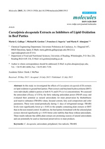 Gallego, M., Gordon, M., Segovia, F. and Almajano, M. (2015) Caesalpinia decapetala extracts as inhibitors of lipid oxidation in beef patties. Molecules, 20 (8). pp. 13913-13926. ISSN 1420-3049 doi: 10.3390/molecules200813913