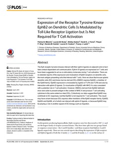 Zhou, R., Mimche, P. N., Brady, L. M., Keeton, S., Fenne, D. S. J., King, T. P., Quicke, K. M., Hudson, L. E. and Lamb, T. J. (2015) Expression of the receptor tyrosine kinase ephb2 on dendritic cells is modulated by toll-like receptor ligation but is not required for t cell activation. PLoS ONE, 10 (9). e0138835. ISSN 1932-6203 doi: 10.1371/journal.pone.0138835
