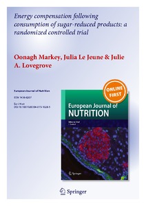 Markey, O., Le Jeurne, J. and Lovegrove, J. A. ORCID: https://orcid.org/0000-0001-7633-9455 (2016) Energy compensation following consumption of sugar-reduced products: a randomized controlled trial. European Journal of Nutrition, 55 (6). pp. 2137-2149. ISSN 1436-6215 doi: 10.1007/s00394-015-1028-5