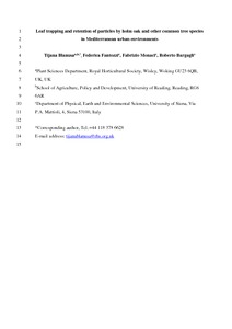 Leaf trapping and retention of particles by holm oak and other common tree species in Mediterranean urban environments