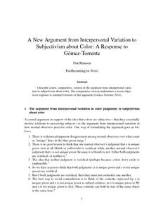A new argument from interpersonal variation to subjectivism about color: a response to Gómez-Torrente