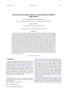 Ceppi, P., Hartmann, D. L. and Webb, M. J. (2016) Mechanisms of the negative shortwave cloud feedback in mid to high latitudes. Journal of Climate, 29 (1). pp. 139-157. ISSN 1520-0442 doi: 10.1175/JCLI-D-15-0327.1