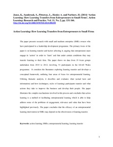 • Jones, K., A. Henley, S. Sambrook, and H. Norbury. 2013. “Learning to LEAD for Business Growth – Implications for Supporting SMEs in Wales.” Contemporary Wales, 26, 1-23. ISBN: 978-0-7083-2683-1.