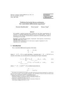 Boedihardjo, H., Lyons, T. and Yang, D. (2015) Uniform factorial decay estimate for the remainder of rough Taylor expansion. Electronic Communications in Probability, 20. 94. ISSN 1083-589X doi: 10.1214/ECP.v20-4124