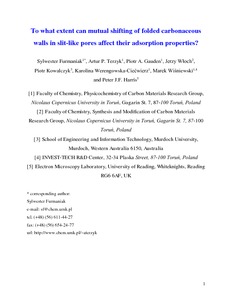 Furmaniak, S., Terzyk, A. P., Gauden, P. A., Włoch, J., Kowalczyk, P., Werengowska-Ciećwierz, K., Wiśniewski, M. and Harris, P. J. F. (2015) To what extent can mutual shifting of folded carbonaceous walls in slit-like pores affect their adsorption properties? Journal of Physics: Condensed Matter, 28 (1). 015002. ISSN 1361-648X doi: 10.1088/0953-8984/28/1/015002