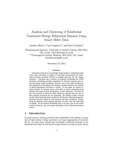 Haben, S., Singleton, C. and Grindrod, P. (2016) Analysis and clustering of residential customers energy behavioral demand using smart meter data. IEEE Transactions on Smart Grid, 7 (1). pp. 136-144. ISSN 1949-3053 doi: 10.1109/TSG.2015.2409786
