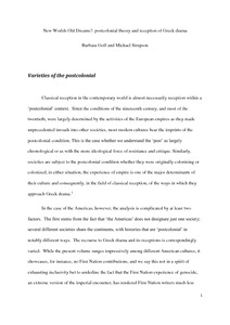 New worlds, old dreams? Postcolonial theory and reception of Greek drama.