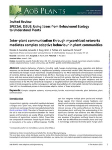 Gorzelak, M. A., Asay, A. K., Pickles, B. J. ORCID: https://orcid.org/0000-0002-9809-6455 and Simard, S. W. (2015) Inter-plant communication through mycorrhizal networks mediates complex adaptive behaviour in plant communities. AoB Plants, 7. plv050. ISSN 2041-2851 doi: 10.1093/aobpla/plv050