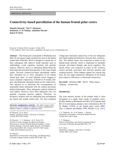 Moayedi, M., Salomons, T. V., Dunlop, K. A. M., Downar, J. and Davis, K. D. (2015) Connectivity-based parcellation of the human frontal polar cortex. Brain Structure and Function, 220 (5). pp. 2603-2616. ISSN 1863-2661 doi: 10.1007/s00429-014-0809-6
