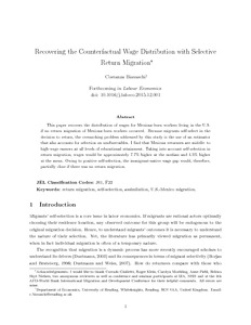 Biavaschi, C. (2016) Recovering the counterfactual wage distribution with selective return migration. Labour Economics, 38 (1). pp. 59-80. ISSN 0927-5371 doi: 10.1016/j.labeco.2015.12.001