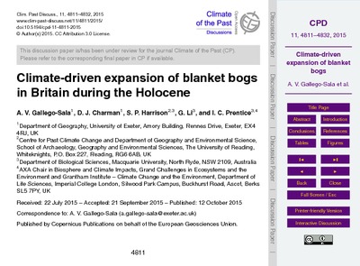 Climate-driven expansion of blanket bogs in Britain during the Holocene.