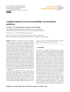 Eden, J., van Oldenborgh, G. J., Hawkins, E. ORCID: https://orcid.org/0000-0001-9477-3677 and Suckling, E. B. (2015) A global empirical system for probabilistic seasonal climate prediction. Geoscientific Model Development, 8 (12). pp. 3947-3973. ISSN 1991-9603 doi: 10.5194/gmd-8-3947-2015