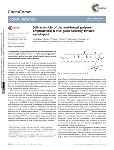 Self-assembly of the anti-fungal polyene amphotericin B into giant helically-twisted nanotapes.