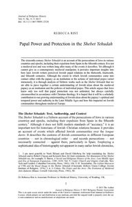 Rist, R. (2016) Papal power and protection in the Shebet Yehudah. Journal of Religious History, 40 (4). pp. 490-507. ISSN 1467-9809 doi: 10.1111/1467-9809.12324