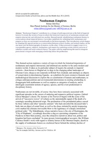 Deb Roy, R. ORCID: https://orcid.org/0000-0002-6836-990X (2015) Nonhuman empires. Comparative Studies of South Asia, Africa and the Middle East, 35 (1). pp. 66-75. ISSN 1548-226X doi: 10.1215/1089201X-2876104