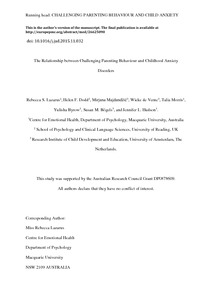 The relationship between challenging parenting behaviour and childhood anxiety disorders.