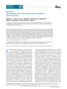 Le Roy, C. I., Mappley, L. J., La Ragione, R. M., Woodward, M. J. and Claus, S. P. (2015) Brachyspira pilosicoli-induced avian intestinal spirochaetosis. Microbial Ecology in Health and Disease, 26. 28853. ISSN 1651-2235 doi: 10.3402/mehd.v26.28853