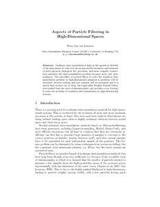 Van Leeuwen, P. (2015) Aspects of particle filtering in high-dimensional spaces. In: Ravela, S. and Sandu, A. (eds.) Dynamic data-driven environmental systems science. Lecture notes in computer science, 8964. Springer, Heidelberg, pp. 251-262. ISBN 9783319251370 doi: 10.1007/978-3-319-25138-7
