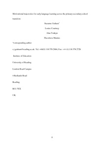 Graham, S. ORCID: https://orcid.org/0000-0002-7743-3977, Courtney, L., Tonkyn, A. and Marinis, T. (2016) Motivational trajectories for early language learning across the primary-secondary school transition. British Educational Research Journal, 42 (4). pp. 682-702. ISSN 1469-3518 doi: 10.1002/berj.3230