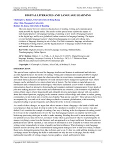 Hafner, C. A., Chik, A. and Jones, R. ORCID: https://orcid.org/0000-0002-9426-727X, eds. (2015) Digital literacies and language learning. Language Learning & Technology, 19 (3). Language Learning & Technology.