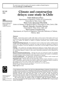 Ballesteros-Pérez, P., del Campo-Hitschfeld, M. L., González-Naranjo, M. A. and González-Cruz, M. C. (2015) Climate and construction delays: case study in Chile. Engineering, Construction and Architectural Management, 22 (6). pp. 596-621. ISSN 0969-9988 doi: 10.1108/ECAM-02-2015-0024