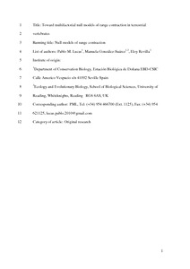 Lucas, P. M., Gonzalez-Suarez, M. ORCID: https://orcid.org/0000-0001-5069-8900 and Revilla, E. (2016) Toward multifactorial null models of range contraction in terrestrial vertebrates. Ecography, 39 (11). 1100- 1108. ISSN 0906-7590 doi: 10.1111/ecog.01819